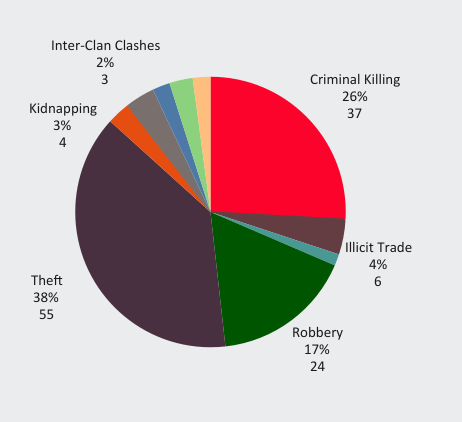 There was no significant change in the overall number of reported crimes, civil unrest incidents and intercommunal violence cases during the review period compared with the previous cycle. However, a mixed trend was observed, with declines in civil disorder, illicit trade and sexual and gender-based violence (SGBV), alongside increases in theft-related offences and criminal killings. Key trends observed during the review period included: