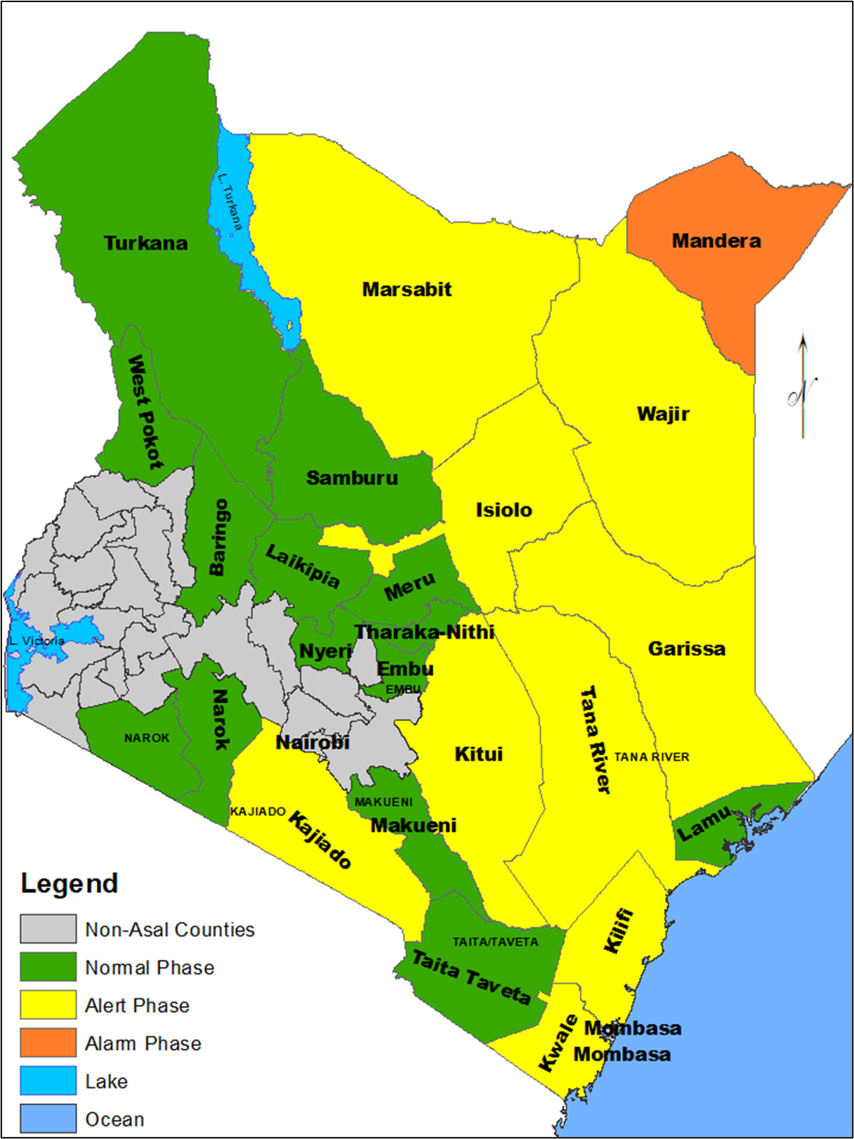 - Alarm Phase: Mandera County, which requires urgent intervention.