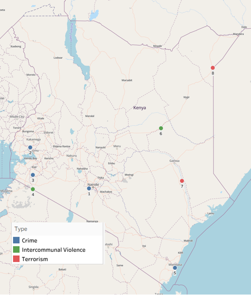 Note: Incident reported in Kilifi was bomb scare not an attack. |