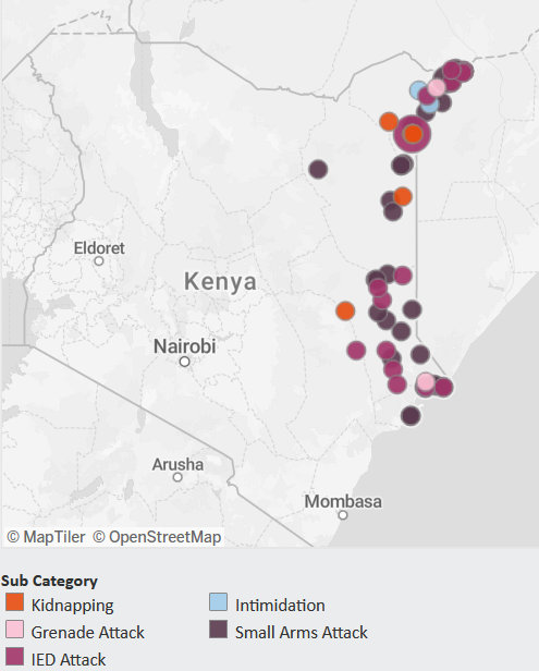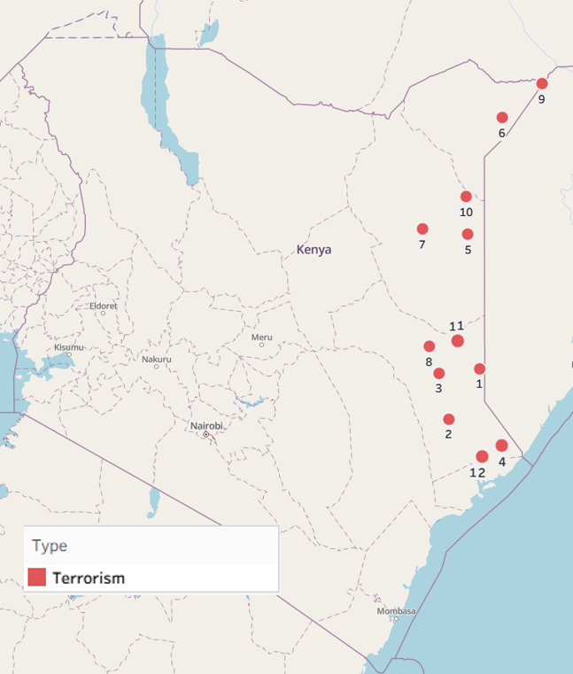Note: Incident reported in Kilifi was bomb scare not an attack. |